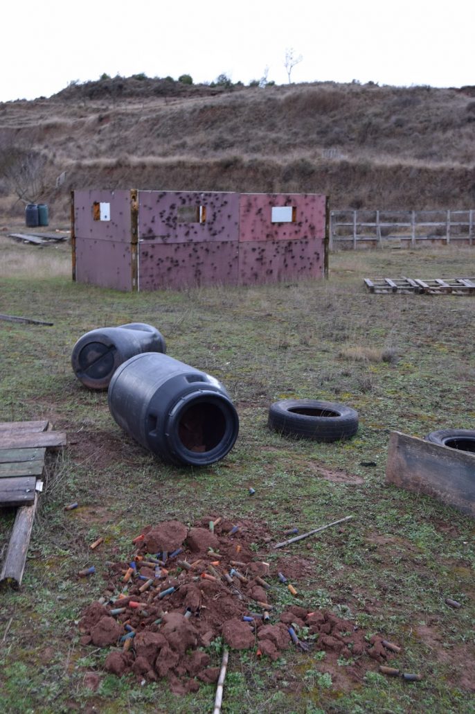 En este momento las instalaciones del campo de Paintball se encuentran completamente abandonadas y deterioradas. En él mismo podemos encontrar diferentes residuos como una caseta de obra abandonada, cartuchos de caza, neumáticos usados, plásticos, lonas, restos de proyectiles empleados en el Paintball, restos de madera muchos ellos con las puntas vistas con el riesgo que tienen para los paseantes… A todo lo anterior debemos añadir que los elementos más ligeros se están dispersando por el medio natural por parcelas diferentes que donde se localizaba esta actividad. También debemos indicar que se encuentran zanjas a lo largo de todo el campo de Paintball con el riesgo que suponen para los ciudadanos.