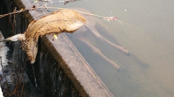 A continuación, se adjuntan unas fotografías de un canal en Tirgo, donde frecuentemente aparecen corzos, jabalíes y otros animales ahogados.