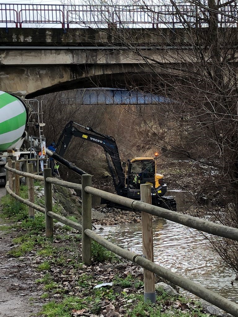 Las máquinas han vuelto a entrar en el cauce, una vez más, para modificar su trazado. En esta ocasión ha sido bajo el puente de Avenida Zaragoza, cerca del barrio de Varea.