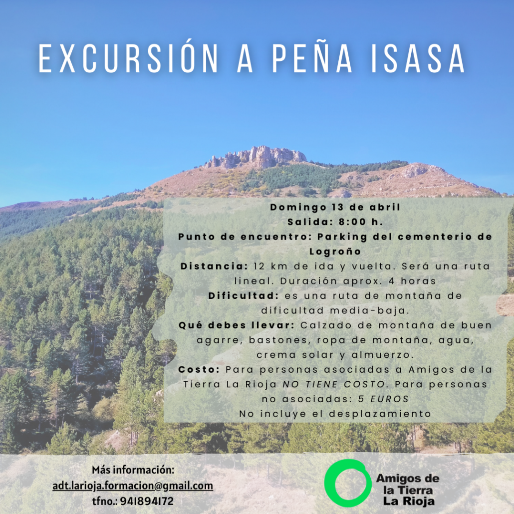 - Costo: Para personas asociadas a Amigos de la Tierra La Rioja NO TIENE COSTO. Para personas no asociadas: 5 EUROS