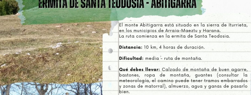 CANCELADA POR LLUVIAS-EXCURSIÓN: Ermita de Santa Teodosia – Abitigarra