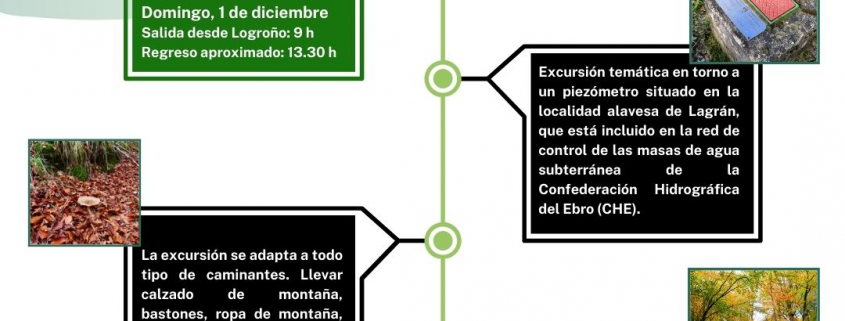 Excursión temática en torno a un piezómetro (dispositivo que su usa para medir la presión de poros o el nivel de agua en perforaciones o cavidades. A menudo se describe como un manómetro o un dispositivo para medir presión) situado en la localidad alavesa de Lagrán, que está incluido en la red de control de las masas de agua subterránea de la Confederación Hidrográfica del Ebro (CHE). El recorrido parte de la carretera A-3132 con dirección hacia el Alto de la Cueva de la Raposa y vuelve al mismo punto de salida, siguiendo un itinerario circular, a través del Barranco de Valdiapeta. Tiene unos 8 km de longitud y un desnivel vertical aproximado de unos 150 m respecto al punto de salida (situado a unos 800 m de altitud).